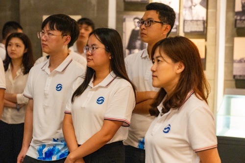 活动首站,供水公司青年们前往“团一大”广场和“团一大”纪念馆参观学习,寻根溯源,重温“团一大”光辉历史。团一大纪念馆位于中国社会主义青年团第一次全国代表大会召开地广州东园旧址,馆内分为“历史召唤”“潮起东园”“青运新篇”“牢记使命”四个板块,纪念馆里珍贵的实物、栩栩如生的雕塑丰富的图片、以及历史影像资料,再现了共青团创建的艰辛历程。借助先进的全息影像技术,青年们仿佛穿越时空,亲历了那个激情燃烧的岁月,从中汲取奋进的力量,以更好地服务于供水事业。